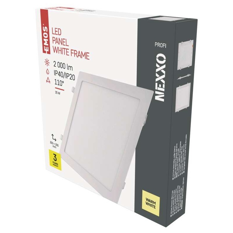 EMOS LED vestavné svítidlo NEXXO, čtvercové, bílé, 25W, teplá bílá
