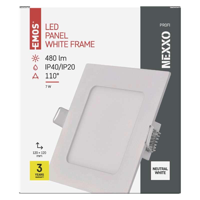 EMOS LED vestavné svítidlo NEXXO, čtvercové, bílé, 7W, neutrální bílá