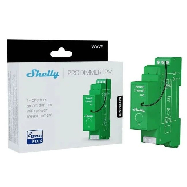 Shelly Wave PRO Dimmer 1PM - 1kanálový stmívač na DIN lištu s měřením spotřeby a Z-Wave