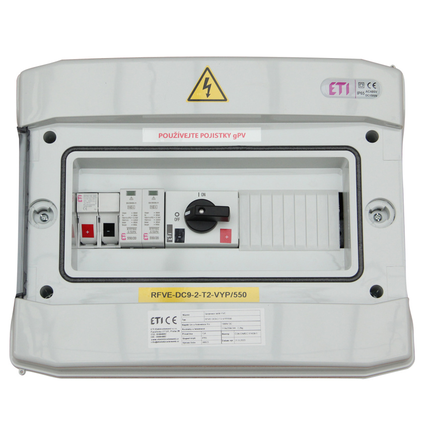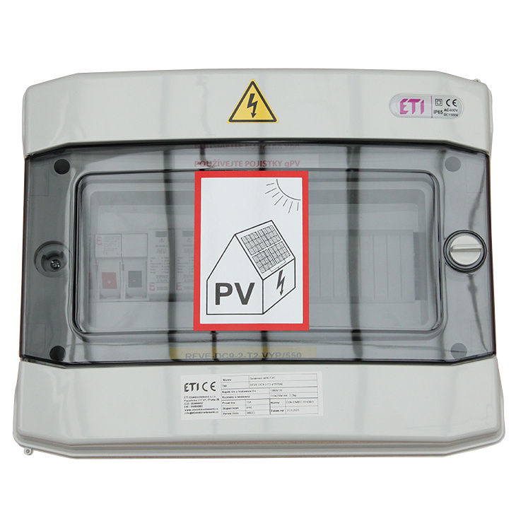 Kompletní nástěnný DC rozvaděč ETI RFVE-DC9-2-T2-VYP/550 je certifikovaný pro instalace fotovoltaického ohřevu vody.