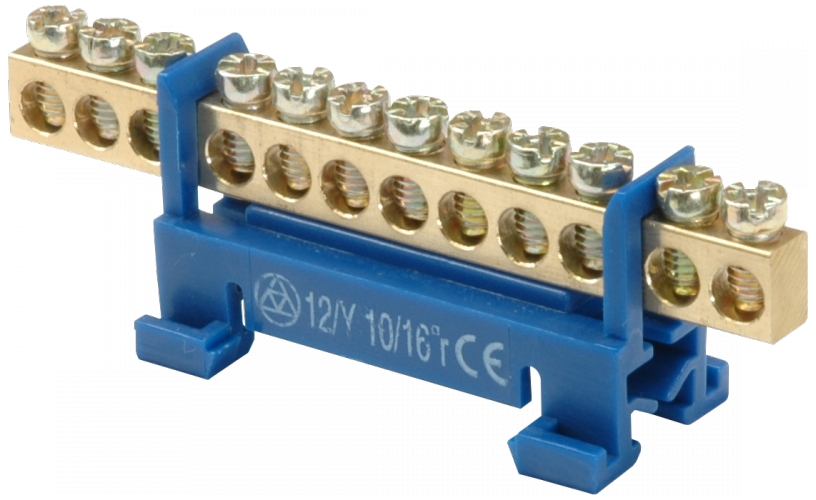 Propojovací můstek nebo též nulový můstek SP 12/N SEZ - 12 svorek pro nulové N vodiče, barva modrá, maximální průřez pevného vodiče 16mm2, 660V, 63A, na DIN lištu