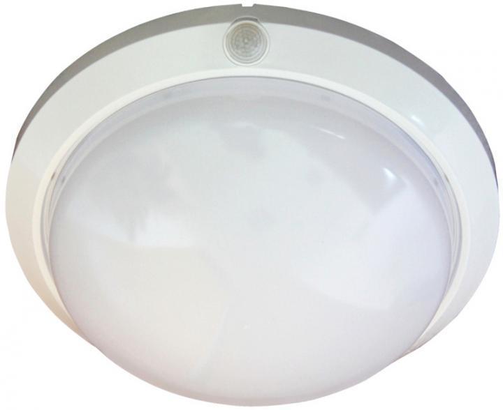 Přisazené stropní svítidlo s čidlem pohybu, kruhového tvaru. Barva límce bílá, materiál plast.
