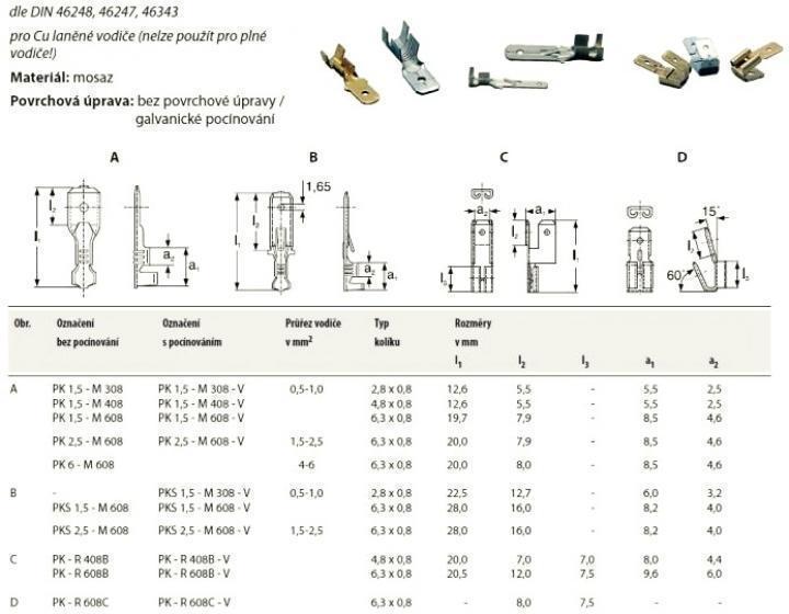 Rozměry konektoru: Plochý 6,3x0,8 mm