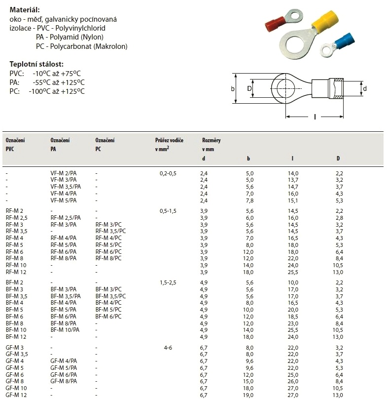 Jmenovitý průřez: 1.5 - 2.5 mm2