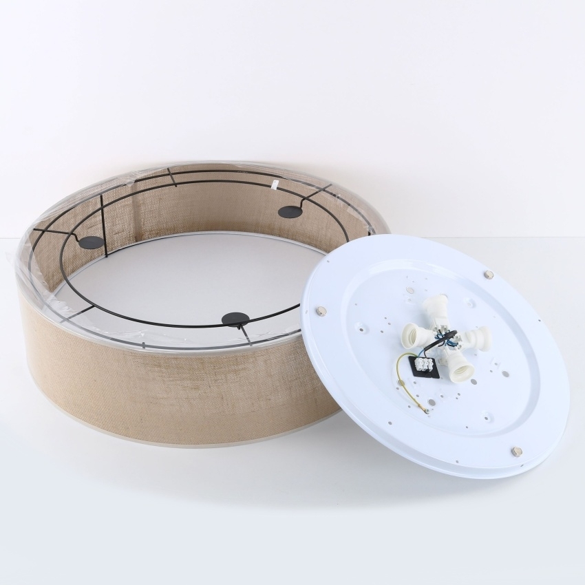TK Lighting JUTA 6584 je elegantní stropní svítidlo v přírodním stylu, které kombinuje kovovou konstrukci s textilním stínidlem v bílo-hnědém odstínu. Kulatý tvar o průměru 60 cm a čtyři objímky E27 zajišťují rovnoměrné a příjemné osvětlení místnosti. Mléčný difuzor jemně rozptyluje světlo a vytváří útulnou atmosféru. Díky univerzálnímu designu se hodí do obývacího pokoje, jídelny, kuchyně i chodby. Svítidlo umožňuje použití ekologických a úsporných žárovek.