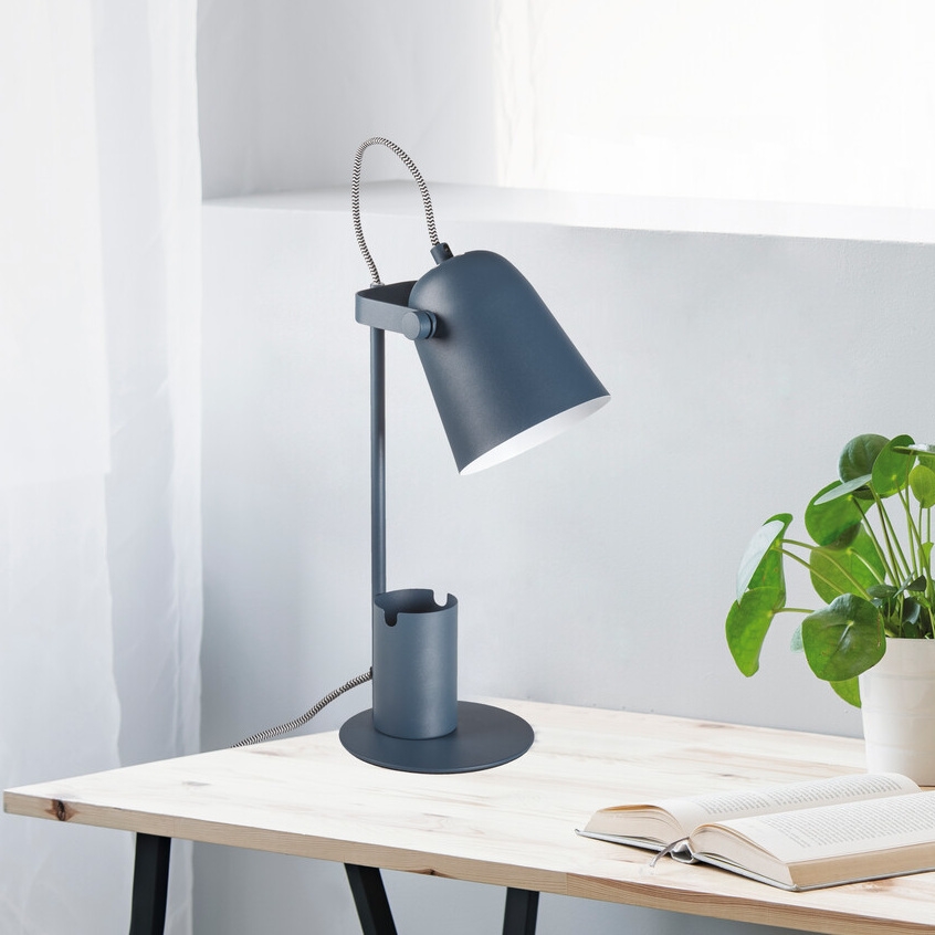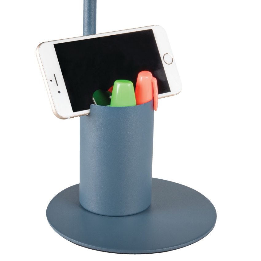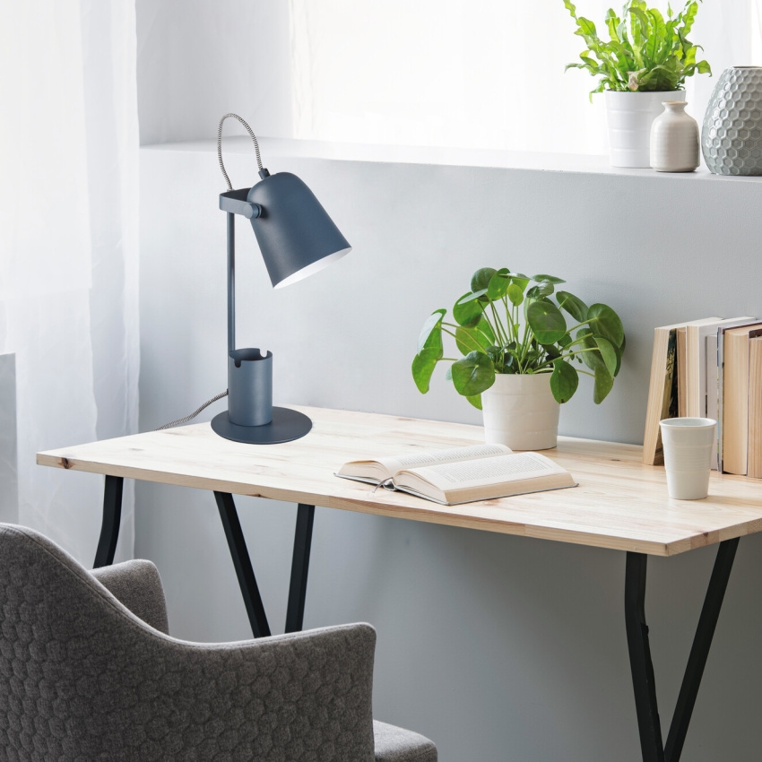 Kancelářská stolní lampa RAIBO E27 - Kanlux RAIBO je módní retro stolní lampa. Je k dispozici ve 4 pastelových barvách a také v oblíbené černé a bílé. V základně je zabudovaný organizér s úchytem, do kterého můžete vložit telefon, pera nebo brýle. Velké stínidlo, do kterého lze namontovat žárovku s paticí E27, má široký rozptyl světla. Je zde vidět retro vliv, ale také smysl pro detail a solidní zpracování (ocel). Pozornost jsme věnovali i spodní straně lampy a přidali jsme pěnovou podložku, aby lampa nepoškrábala stůl.