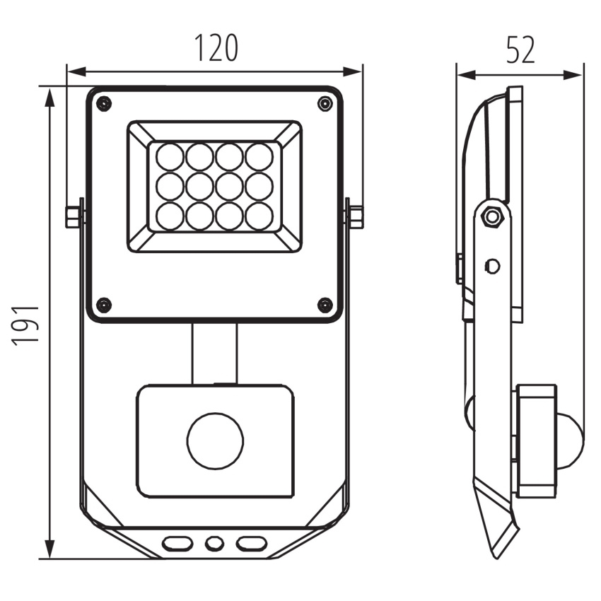 Kanlux ACETE 10W CCT SE GR je kompaktní LED reflektor se zabudovaným PIR čidlem a možností přepínání teploty chromatičnosti na 3000 K, 4000 K nebo 6500 K. Díky vysoké účinnosti a širokému vyzařovacímu úhlu 90° poskytuje rovnoměrné osvětlení pro vstupy, fasády a dvory. Odolné tělo z litého hliníku a PC difuzor zajišťují spolehlivý provoz, krytí IP44 chrání elektroniku verze se senzorem. PIR čidlo umožňuje nastavit čas sepnutí, prah okolního osvětlení (LUX) a oblast detekce. Pro snadnou instalaci nechybí úhlově nastavitelný držák a přívodní kabel délky 20 cm.