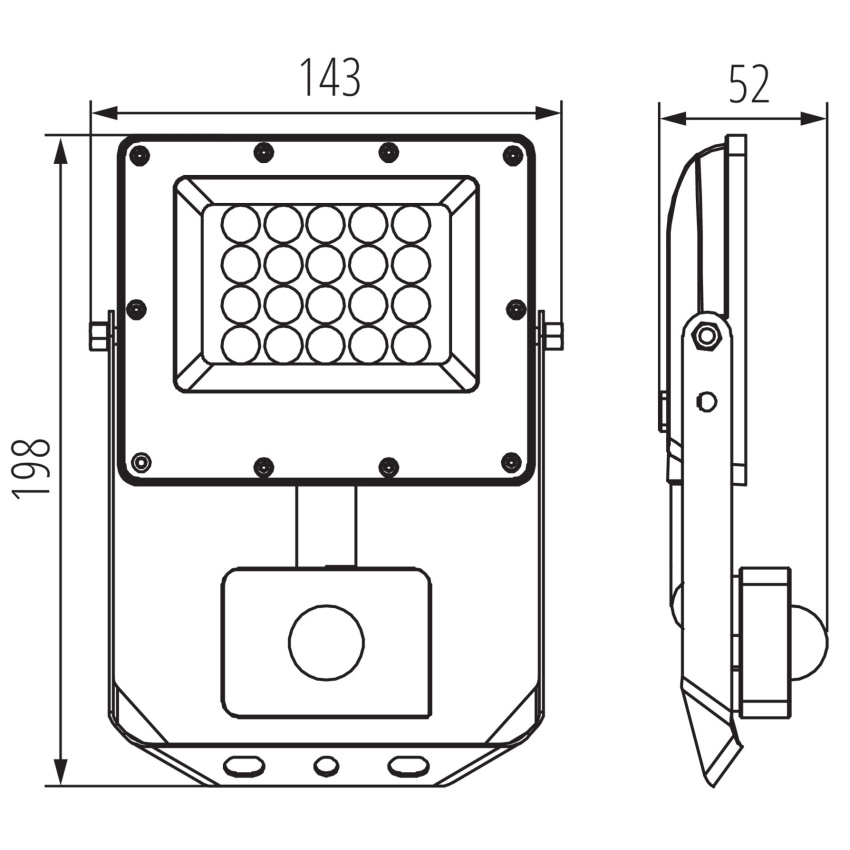 Kanlux ACETE 20W CCT SE GR je kompaktní LED reflektor se zabudovaným PIR čidlem a možností přepínání teploty chromatičnosti na 3000 K, 4000 K nebo 6500 K. Široký vyzařovací úhel 90° a kvalitní optika zajišťují rovnoměrné nasvícení ploch u vstupů, na fasádách i v okolí domů. Odolné tělo z litého hliníku a PC difuzor spolu s krytím IP44 chrání svítidlo při venkovním použití verze se senzorem; montáž usnadňuje úhlově nastavitelný držák a přívodní kabel délky 20 cm. PIR čidlo umožňuje nastavit čas sepnutí, prah okolního osvětlení (LUX) i oblast detekce.