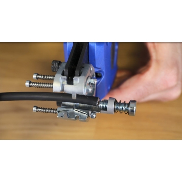 Klauke EKSD50ML je profesionální akumulátorový odizolovač navržený pro přesné a beznámahové odizolování všech běžných typů izolací. Díky intuitivní funkci PowerSense nabízí pohodlí elektromechanického nástroje a snadné ovládání jedním tlačítkem. Odizolování i řezání probíhá pomocí jediné vložky, kterou lze rychle vyměnit. Nástroj umožňuje nastavit délku odizolování až do 28 mm a je vhodný pro vodiče s průřezem 6–35 mm2. S vestavěnou LED pro osvětlení pracovního prostoru, přehledným indikátorem stavu údržby a možností propojení s aplikací Klauke Link® je ideální volbou pro efektivní práci i v náročných podmínkách.