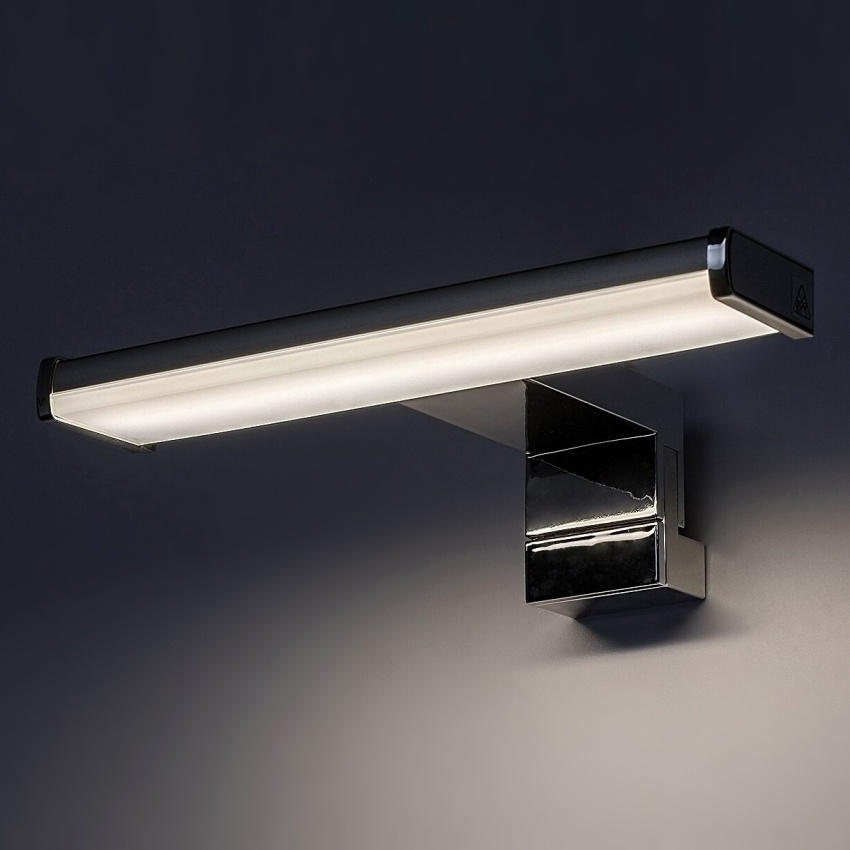 Nástěnné LED svítidlo Rabalux Levon 75039 je elegantní osvětlení určené především nad koupelnové zrcadlo. Moderní hranatý design v chromové barvě doplňuje bílé plastové stínítko, které zajišťuje rovnoměrné rozptýlení světla. Díky integrovanému LED zdroji o výkonu 4 W nabízí svítidlo světelný tok 450 lm (520 lm bez stínítka) a vyzařuje přirozené bílé světlo o teplotě 4000 K. Svítidlo poskytuje čistý a jasný světelný efekt, ideální pro každodenní koupelnové činnosti. Ochrana IP44 zaručuje odolnost proti vlhkosti a stříkající vodě, díky čemuž je model Levon vhodný pro instalaci v koupelnách. LED technologie zaručuje dlouhou životnost až 30 000 hodin a úsporný provoz.
