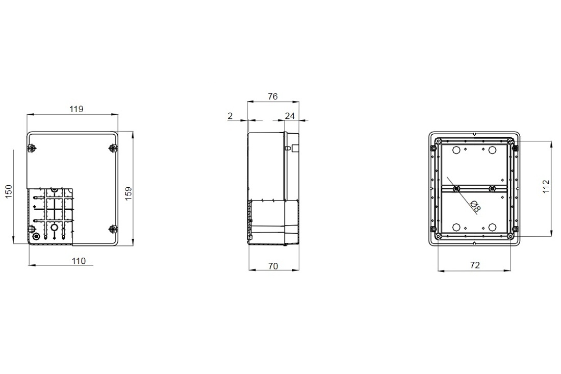 Nástěnná krabice s hladkými stěnami pro spojování a pro elektrická a elektronická zařízení.