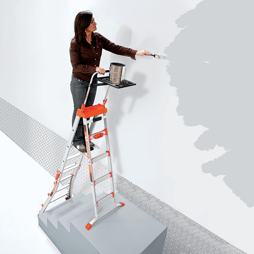 Se schopností měnit polohy a upravovat jeho výšku lze Select Step nastavit v konfiguracích štafle, 90° pozice i na schody. Jeho výška lze pomocí vysunutí základny zvěšit až na téměř dvojnásobek přepravní velikosti s dosahem přes 376cm!