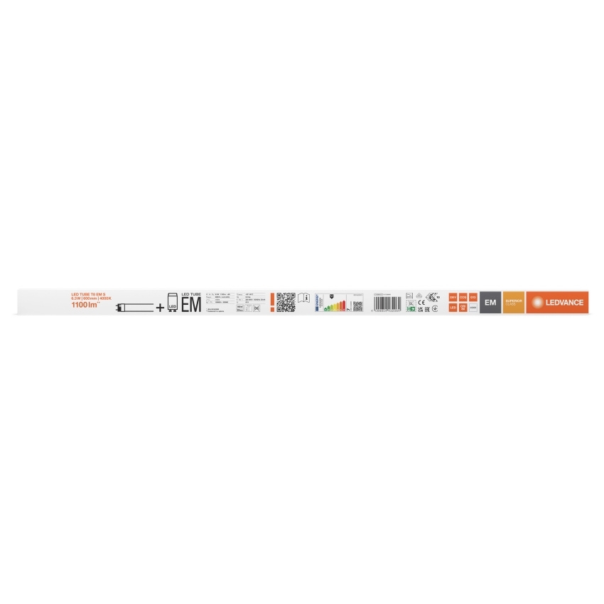 LEDvance T8 EM SUPERIOR je kvalitní LED trubice o délce 600 mm a výkonu 6,3W, která nahrazuje klasické zářivky T8 s paticí G13. Díky skleněné konstrukci je trubice odolná proti ohýbání a zároveň bezpečná pro použití v potravinářském průmyslu. Vyniká extrémně dlouhou životností až 100 000 hodin, okamžitým startem a vysokou energetickou účinností. Je ideální pro použití v průmyslových prostorách, supermarketech, koridorech i chladnějších podmínkách. Instalace je rychlá a jednoduchá – bez nutnosti přepojování svítidla.