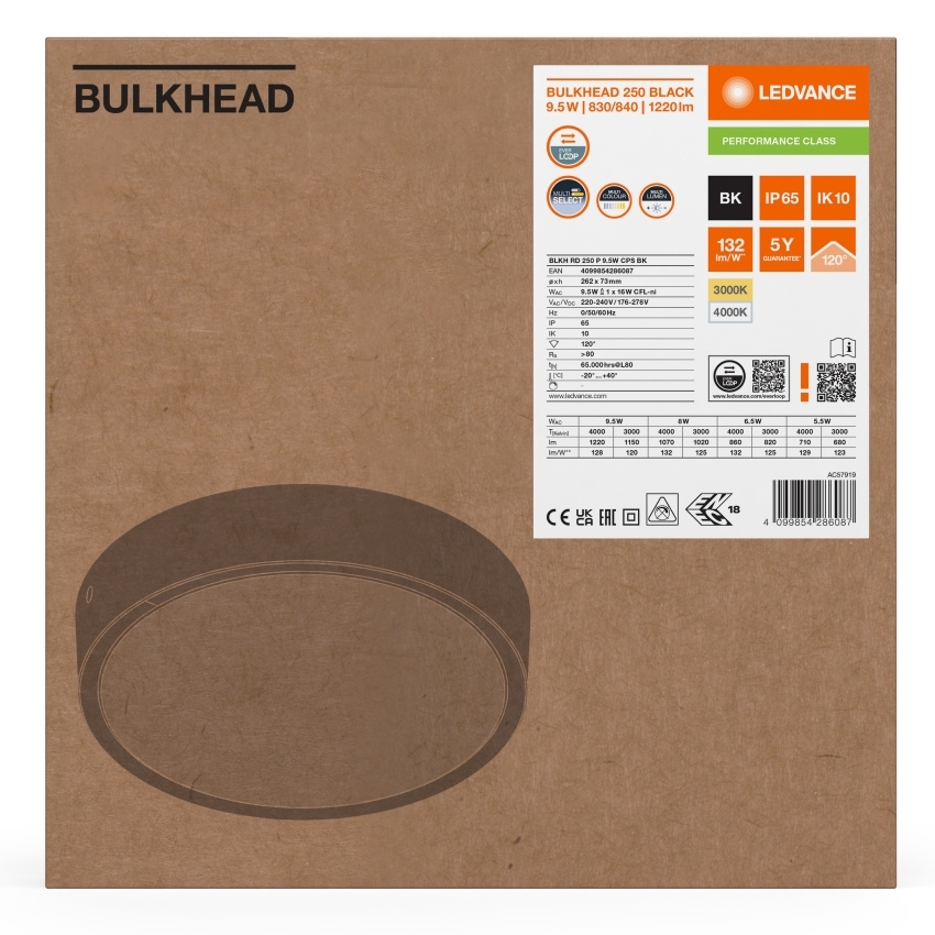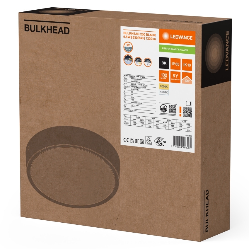 BLKH RD 250 P 9.5W CPS BK - Kompaktní LED svítidlo LEDVANCE BLKH RD 250 P o výkonu 9,5 W poskytuje světelný tok 1220 lm. Vhodné pro vnitřní i chráněné venkovní prostory, ideální pro chodby, vstupy či technické místnosti.