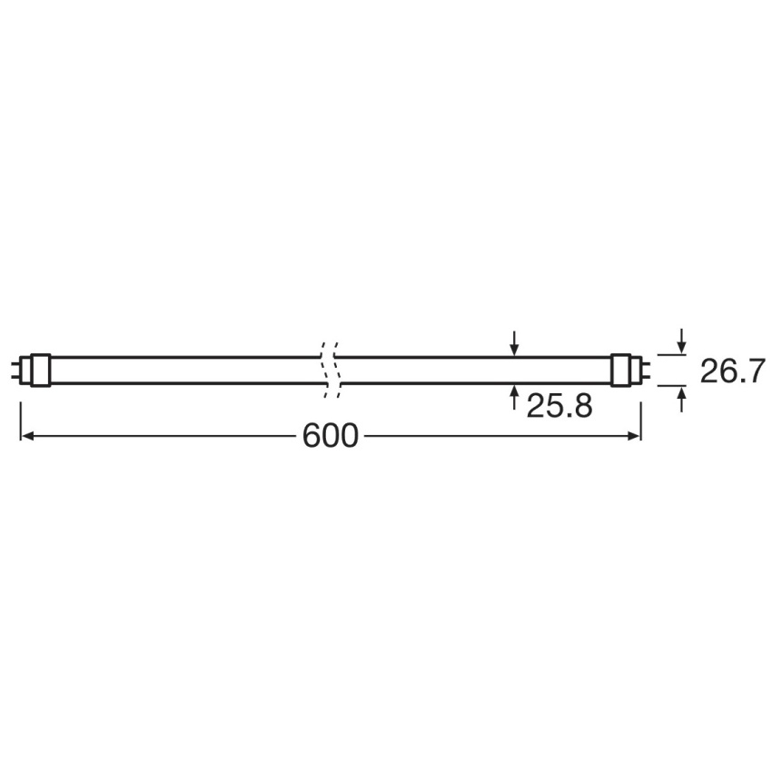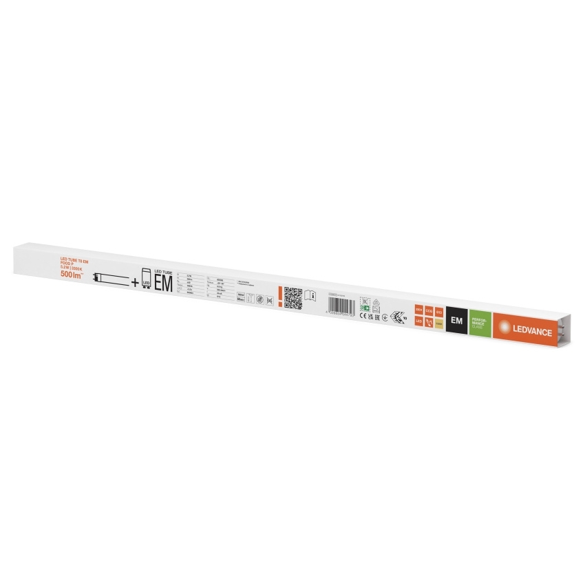 LEDVANCE LED TUBE T8 EM FOOD 600 mm 5.2W 833 je LED trubice s jmenovitým výkonem 5,2 W a světelným tokem 500 lm. Nabízí teplotu chromatičnosti 3300 K, barvu světla 833 NATURA a vyzařovací úhel 190°. Trubice je určena pro provoz s elektromagnetickými předřadníky a AC sítí, je vybavena paticí G13 a má skleněnou trubici s ochranou proti střepinám. Je vhodná pro okolní teploty od -20 do +50 °C a není stmívatelná. Oblasti použití zahrnují prezentaci jídel, například v řeznictvích, pekárnách, supermarketech nebo u zpracovatelů masa.