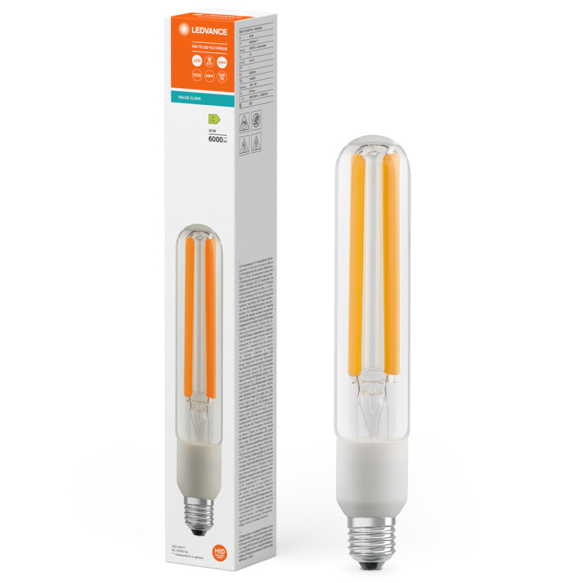 LED náhrada za NAV výbojky v designově orientovaných venkovních aplikacích. Vlastnosti výrobku: Vhodné pro provoz s konvenčním předřadníkem (KP) nebo sítí 230 V AC. Velmi vysoká účinnost až 190 lm/W. Výkonový koeficient: 0,9. Stupeň krytí: IP65. Přepěťová ochrana: až 2 kV (L-N). Výhody výrobku: Stejný design jako tradiční NAV výbojky s čirou, trubicovou celoskleněnou baňkou. Plné využití reflektoru stávajícího svítidla díky vyzařovacímu úhlu 360 stupňů. Při použití jako náhrada za sodíkové výbojky (NAV) šetří až 78 % energie. Okamžitě 100% světla, bez náběhu. Podobné rozdělení světla jako tradiční NAV výbojky. Oblasti použití: Ulice. Plošné osvětlení. Pěší zóny. Parky. Venkovní použití pouze ve vhodných svítidlech.