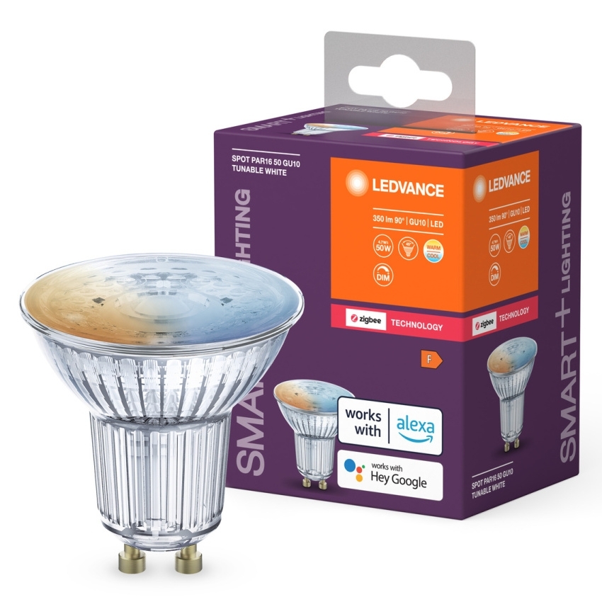 LEDVANCE SMART+ ZigBee LED bodovka PAR16 4,7W GU10 – laditelná bílá, kompatibilní s chytrou domácností