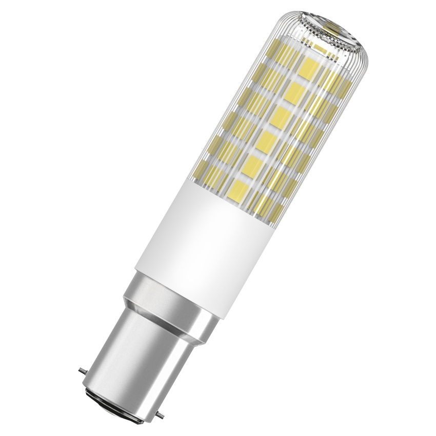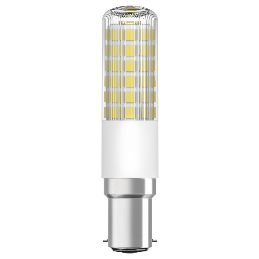 LED zdroj LEDVANCE T SLIM 60 s čirou baňkou a paticí B15d je ideální volbou pro kompaktní a otevřená svítidla, jako jsou malá designová svítidla, chladničky či šicí stroje. Nabízí kvalitní osvětlení s teplou bílou barvou (2700 K), dobrým rozptylem světla a dlouhou životností až 15 000 hodin. Díky extrémně malým rozměrům se hodí i tam, kde je prostor omezený, a přitom zajišťuje výrazné snížení spotřeby energie.