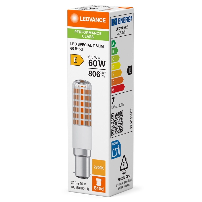 LEDVANCE LED zdroj T SLIM 60 6,5W B15d čirá – kompaktní a účinný světelný zdroj pro dekorativní svítidla