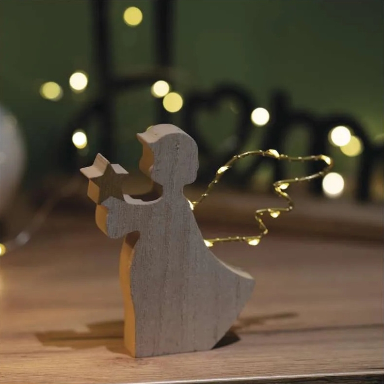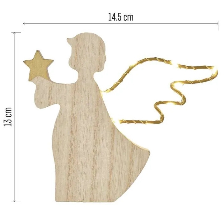 EMOS LED vánoční dekorace anděl DCWW43 je dřevěná svítící dekorace určená pro vnitřní použití.