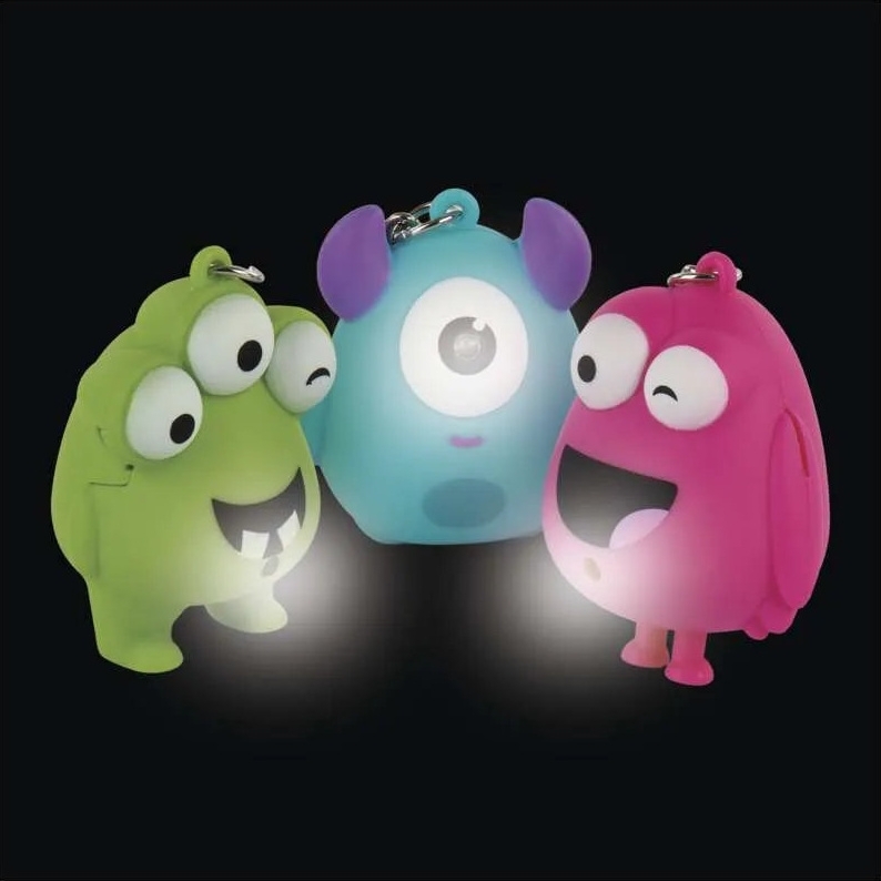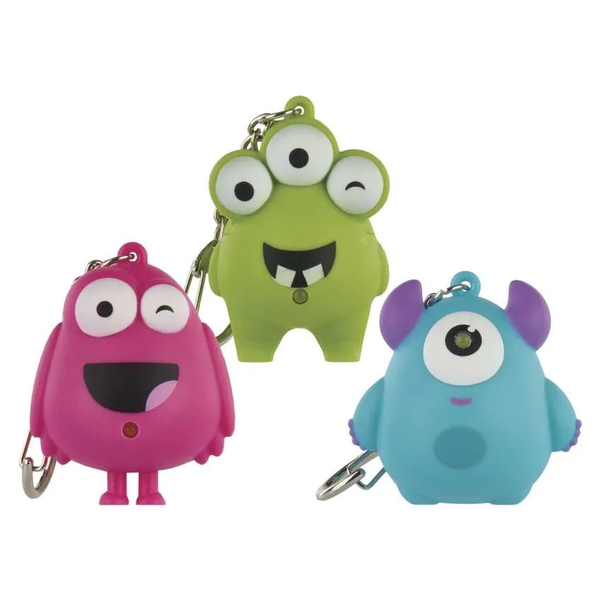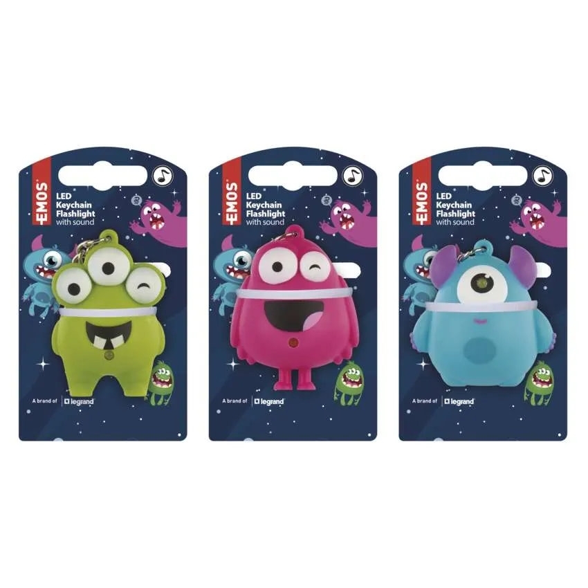EMOS LED klíčenka P4721 s motivem příšerek a zvukem je drobný světelný doplněk dodávaný v prodejním balení po 18 kusech.
