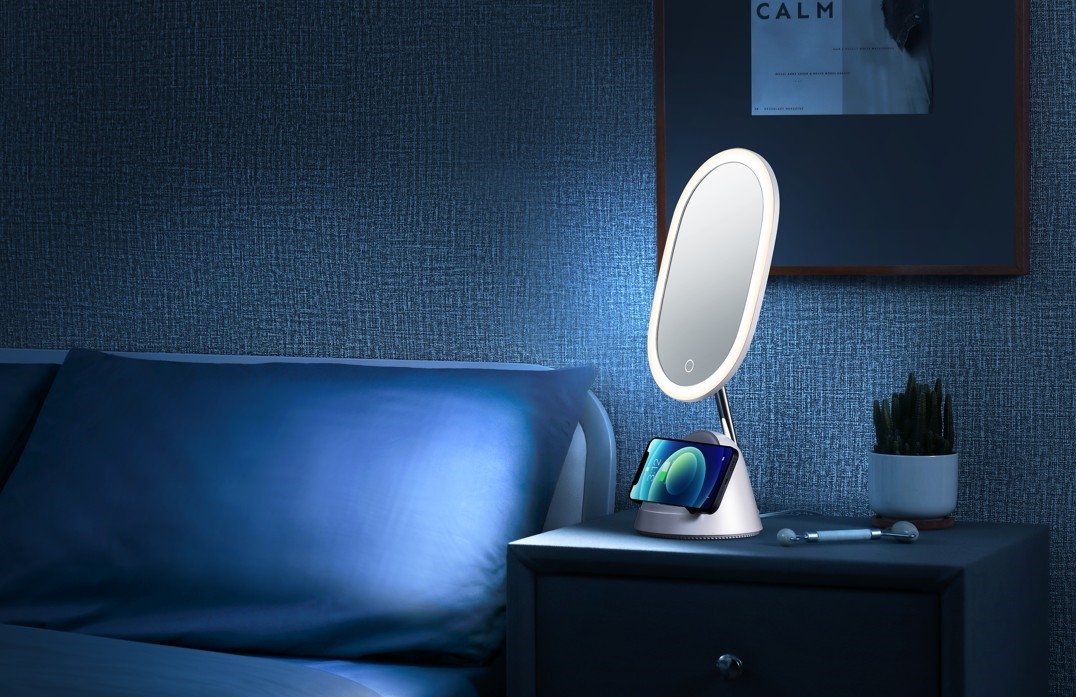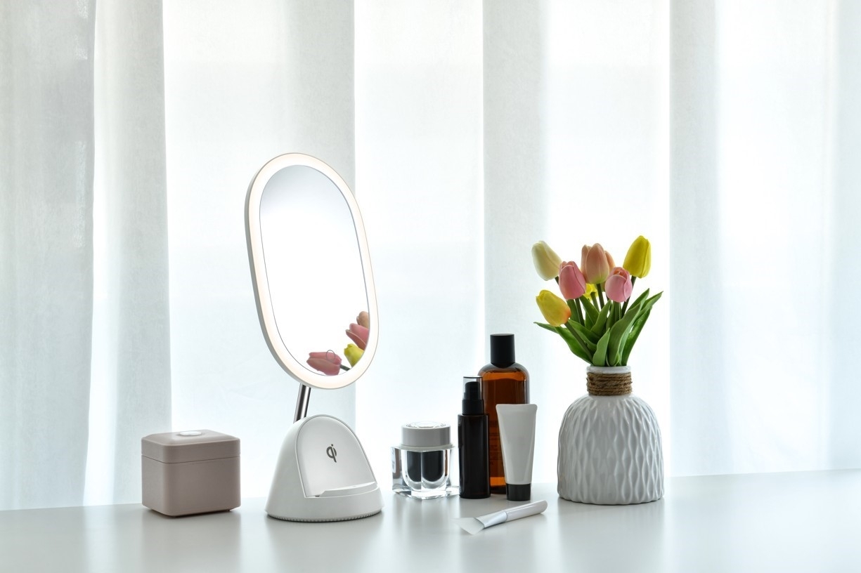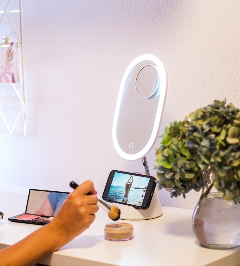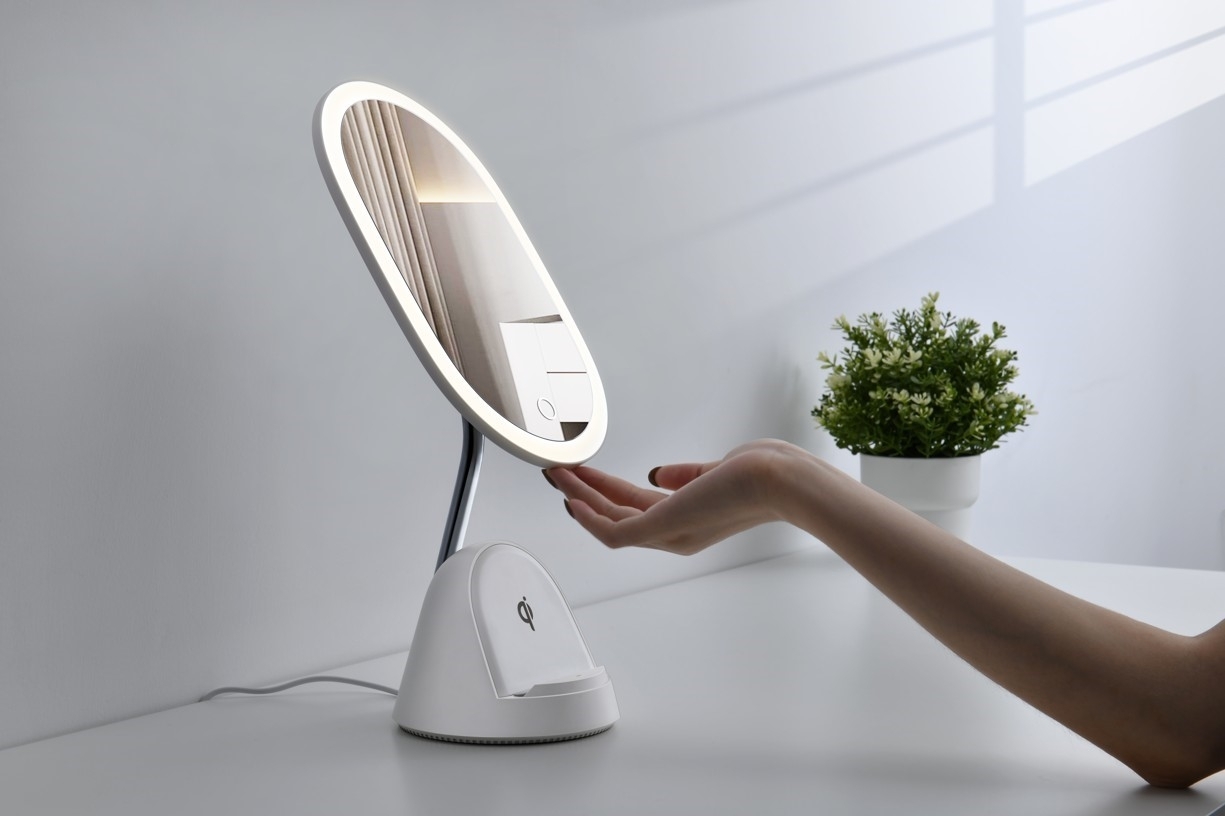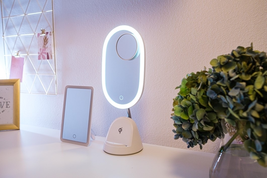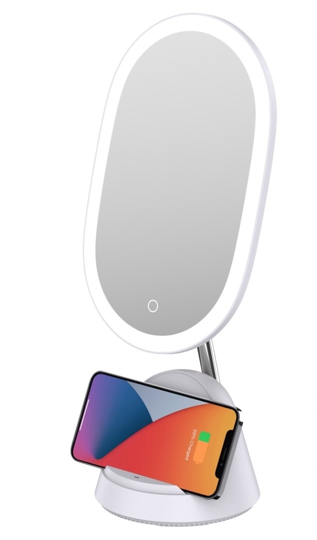 LED kosmetické zrcátko Immax FACE 3v1 08970L se stojánkem a Qi nabíjením, bílé, 5500 K, stmívání 3 stupně