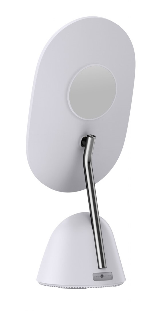 LED kosmetické zrcátko Immax FACE 3v1 (katalogové číslo 08970L) je stolní zrcátko oválného tvaru s LED podsvícením a stojánkem s bezdrátovým Qi nabíjením pro mobilní zařízení. Součástí je malé přídavné magnetické zvětšovací zrcátko se zvětšením 3× a zrcátko má také stojánek na mobil. LED osvětlení má jmenovitý příkon 4 W, Qi nabíjení 10 W, barva světla je 5500 K, svítivost 70 lm a CRI (Ra) > 80, počet LED je 28 a typ LED 2835. K dispozici jsou 3 stupně stmívání, pracovní teplota je -20 až +50 °C, vstupní napětí a proud zrcátka je DC 12 V / 1,5 A a vstupní napětí napájecího zdroje AC 220–230 V / 50–60 Hz. Materiál je kov, plast a ABS, rozměry jsou 16,8 × 13 × 39,3 cm, hmotnost 1053 g, krytí IP20 a certifikace CE a RoHS. V balení je LED zrcátko, malé přídavné magnetické zvětšovací zrcátko, napájecí adaptér a uživatelský manuál.