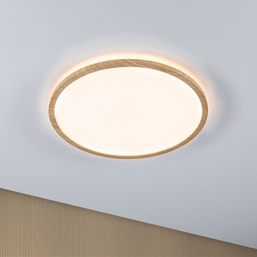 Kulatý LED panel PAULMANN ATRIA SHINE 71029 s průměrem 420 mm představuje elegantní a praktické řešení pro celkové osvětlení interiéru. Rám ve vzhledu dřeva dodává svítidlu přirozený a útulný vzhled, díky čemuž se výborně hodí do obývacích pokojů, ložnic, kuchyní i dalších obytných prostor. Díky krytí IP44 je možné panel instalovat i do koupelen nebo místností se zvýšenou vlhkostí.