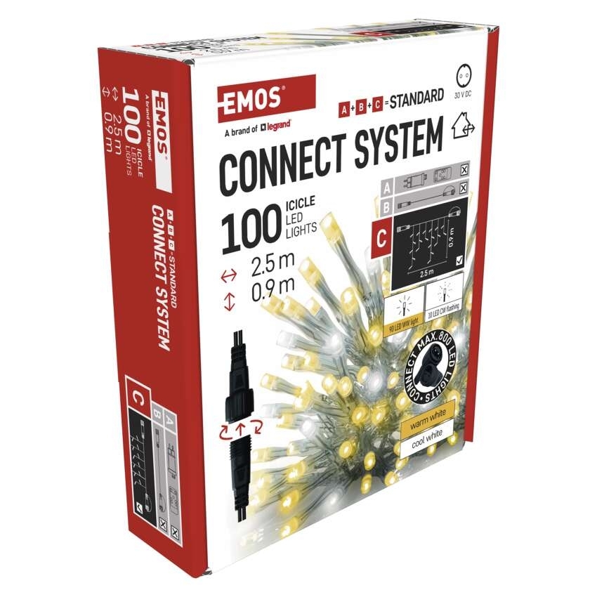 Standard LED spojovací řetěz blikající – rampouchy, 2,5 m, venkovní, teplá/studená bílá