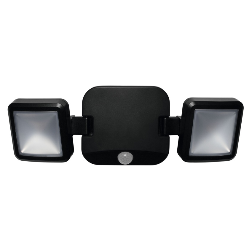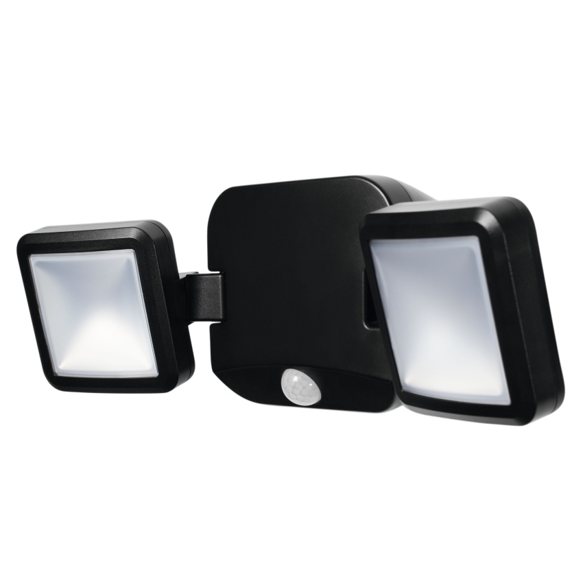 Venkovní LED reflektor s dvojitou hlavicí a napájením z baterií poskytuje světelný tok 480 lm s neutrální bílou barvou světla 4000 K. Díky integrovanému čidlu pohybu a denního světla automaticky reaguje na okolní podmínky a nevyžaduje žádné připojení k elektrické síti.