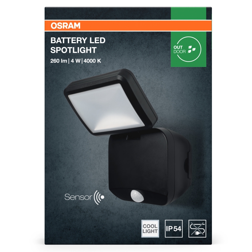 Ledvance Battery LED Spotlight Single 4W 4000K v černém provedení je praktické svítidlo vhodné pro venkovní použití, zejména tam, kde není k dispozici elektrická síť. Díky napájení z alkalických baterií je zcela nezávislé na síťovém napájení. Kombinace pohybového a světelného senzoru zajišťuje automatické zapnutí při detekci pohybu a šetří energii. Reflektor poskytuje světelný tok 260 lm při teplotě chromatičnosti 4000 K a úhlu vyzařování 95°. Tělo z ABS plastu odolává nepříznivým venkovním podmínkám, stupeň krytí IP54 zaručuje ochranu proti prachu a stříkající vodě. Svítidlo vydrží pracovat i při teplotách od −20 do +30 °C a nabízí až 15 000 h životnosti.