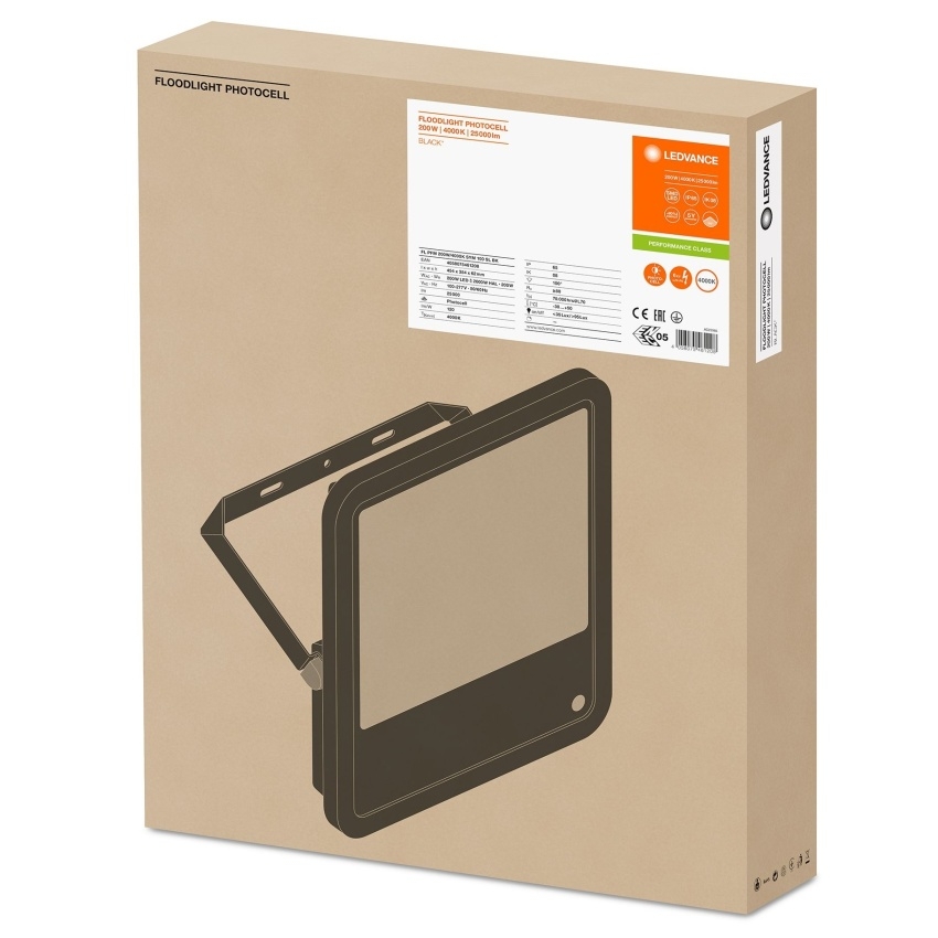 Ledvance FL PFM 200W 4000K SYM100SL BK je moderní LED reflektor vybavený fotobuňkou pro automatické zapínání a vypínání podle úrovně denního světla. Svítidlo nabízí bezpečné a rovnoměrné osvětlení díky difuzoru z matného tvrzeného skla, který eliminuje oslnění. Se světelným tokem 25 000 lm a teplotou chromatičnosti 4000 K poskytuje studené bílé světlo ideální pro průmyslové objekty, veřejné prostory, stavební plochy i fasády budov. Reflektor je chráněn proti prachu a vodě dle IP65 a mechanicky odolný dle IK08. Díky vestavěnému LED driveru a montážní konzole s nastavením úhlu 30° je instalace snadná a flexibilní. Provozní teplotní rozsah −30 až +50 °C zaručuje spolehlivost i v náročných podmínkách.