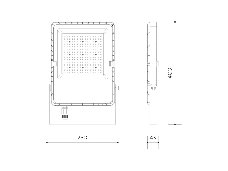 LED reflektor PANLUX MODENA EVO (PN33300061) je určený pro přisazenou montáž a díky integrovaným přepínačům SWITCH umožňuje nastavit výkon na 100 W, 150 W nebo 200 W. Teplotu světla lze přepnout na 3000 K, 4000 K nebo 5000 K a odpovídající světelný tok je 14000 lm, 21000 lm nebo 28000 lm při světelné účinnosti 140 lm/W. Reflektor má krytí IP65, vyzařovací úhel 120° a index podání barev Ra > 80. Napájení je 230 V AC 50 Hz, svítidlo není stmívatelné, životnost je 50 000 h a provozní teplota -20 až 40 °C. Konstrukce je z hliníku (základna) a skla (kryt), barva černá, rozměry 280 × 400 × 43 mm, hmotnost 2,14 kg a připojení je řešeno kabelem zakončeným svorkovnicí 3*2,5mm2; reflektor je vybaven EASY konektorem pro rychlou beznástrojovou montáž.