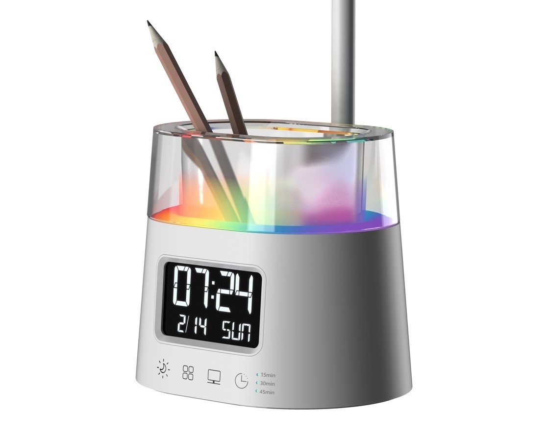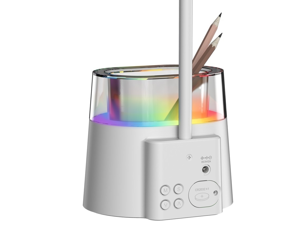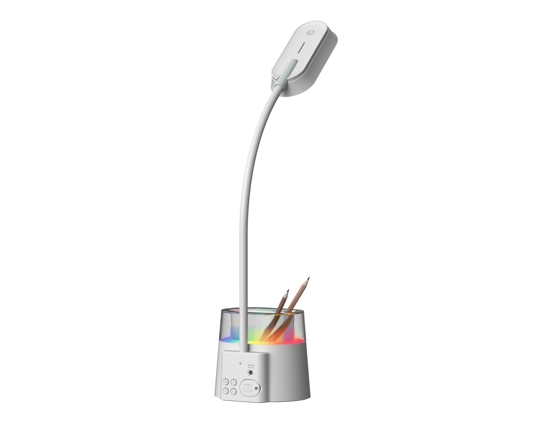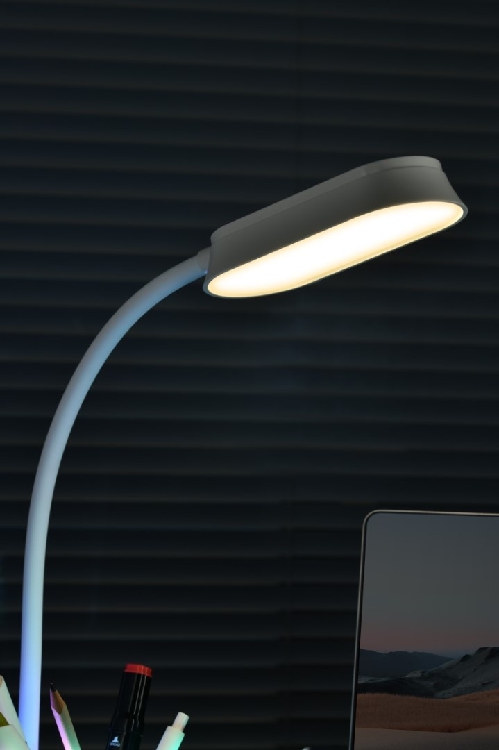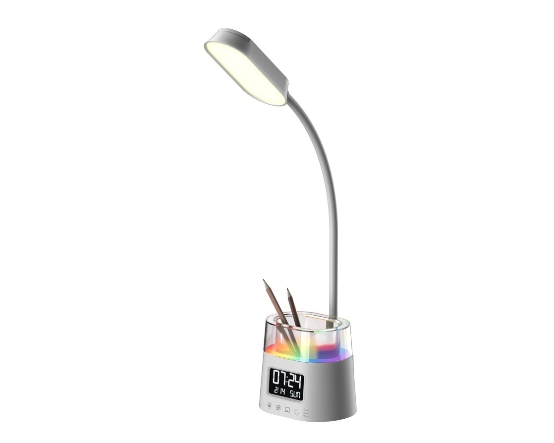 LED stolní lampička Immax FRESHMAN 08980L s RGB podsvícením a držákem na tužky, bílá, 10 W, 350 lm