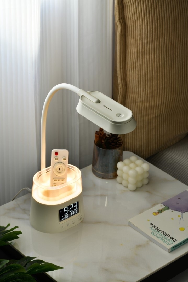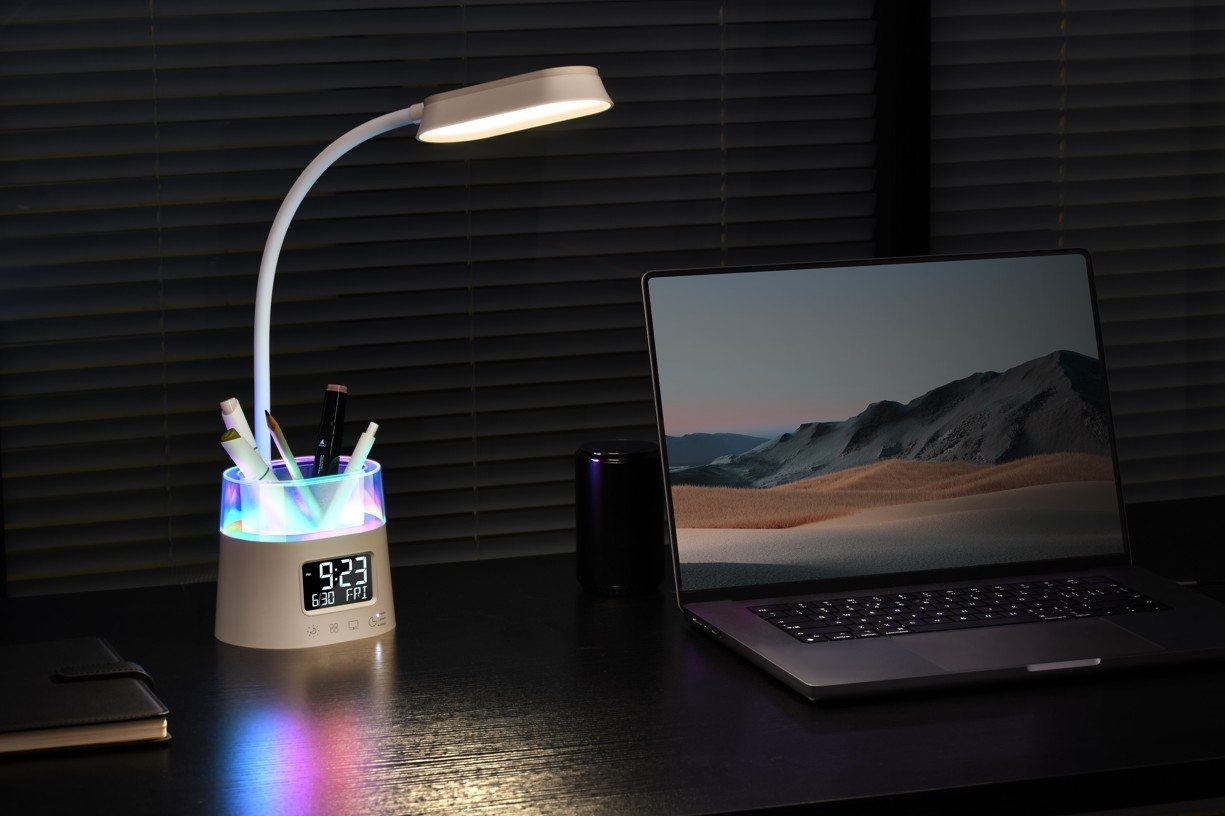 LED stolní lampička Immax FRESHMAN (08980L) je bílá lampička s integrovaným LED modulem a praktickým držákem na tužky nebo dálkové ovladače s RGB podsvícením. Hlavní osvětlení má příkon 10 W a světelný tok 350 lm, umožňuje volbu teploty chromatičnosti 3000 K / 4000 K / 5000 K a nabízí 3 stupně jasu. Podsvícený držák má 3 režimy RGB podsvícení s příkonem 1 W a je možné nastavit automatické vypnutí svícení po 15/30/45 minutách. Lampička má LED displej se zobrazením času (12/24 h režim), data a dne, dvoustupňové nastavení jasu displeje a možnost jeho vypnutí. CRI je RA > 80, počet LED je 38, vstupní napájení je 5 V / 2 A, vstupní napětí je AC 220–230 V, 50/60 Hz, krytí IP20 a rozměry jsou 13,2 × 11,1 × 58,6 cm.