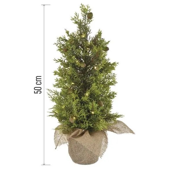 LED svítící stromek má výšku 50 cm a je osazen 30 LED diodami s barvou světla teplá bílá. Napájení je řešeno pomocí tří baterií AA, které nejsou součástí balení, a dekorace je vybavena časovačem. Stromek má příkon 0,24 W, stupeň krytí IP44, výstupní napětí 4,5 V DC a je vyroben z plastu.