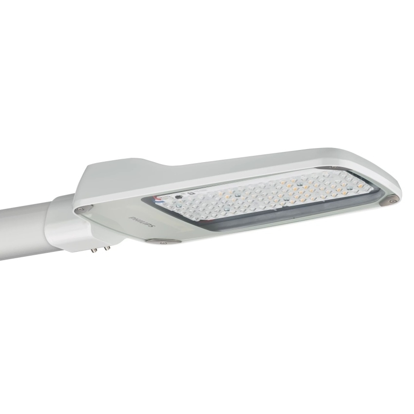 Street light, Hliník litý pod tlakem, Šedá, Napájecí zdroj (zapnuto/vypnuto), 5708 lm, 37 W, 178 lm/W, 4000 K, (0.41, 0.39) SDCM ≤5, CRI70, Střední vyzařování, IP65 | Ochrana proti proniknutí prachu, ochrana proti tryskající vodě, IK08 | 5 J odolná proti vandalismu, Bezpečnostní třída II, Ochrana svítidla proti rázům až 4 kV v rozdílovém a až 4 kV v běžném režimu, Zasunovací konektor s ochranou proti napínání