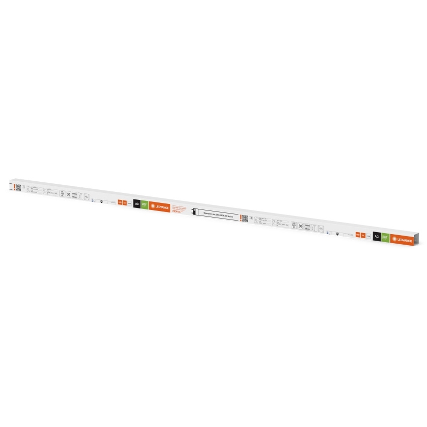 LED trubice LEDVANCE T5 AC HO39 18W 840 o délce 849 mm je určena jako přímá LED náhrada za zářivky T5 s paticí G5 pro provoz na střídavém napětí. Podle technického listu má světelný tok 2800 lm, světelnou účinnost 155 lm/W, teplotu chromatičnosti 4000 K a index podání barev Ra ≥80. Skleněná trubice je opatřena PET povlakem jako ochranou proti třískám, což umožňuje použití i v prostředích s vyššími nároky na bezpečnost. Trubice nabízí nízké flicker hodnoty dle EU 2019/2020, životnost až 50 000 hodin a provozní teplotní rozsah −20 až +45 °C. Typ krytí je IP20 a průměr trubice činí 19 mm s celkovou délkou 863 mm.