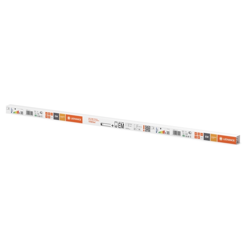 LED trubice LEDVANCE T8 EM SUPERIOR 900 mm 9.7W 840 je určena jako ekvivalent klasických zářivek T8 ve svítidlech s konvenčním předřadníkem nebo pro přímé síťové napájení. Konstrukce ze skla zajišťuje tvarovou stabilitu bez ohýbání a integrovaný povlak chrání proti roztříštění. Trubice nabízí světelný tok 1100 lm, teplotu chromatičnosti 4000 K a nízké blikání dle EU 2019/2020. Podle technického listu má provozní teplotní rozsah –20 až +50 °C a je vhodná pro výrobní prostory, dopravní zóny, chodby či maloobchodní aplikace. Životnost dosahuje až 100 000 hodin a typ krytí je IP20.