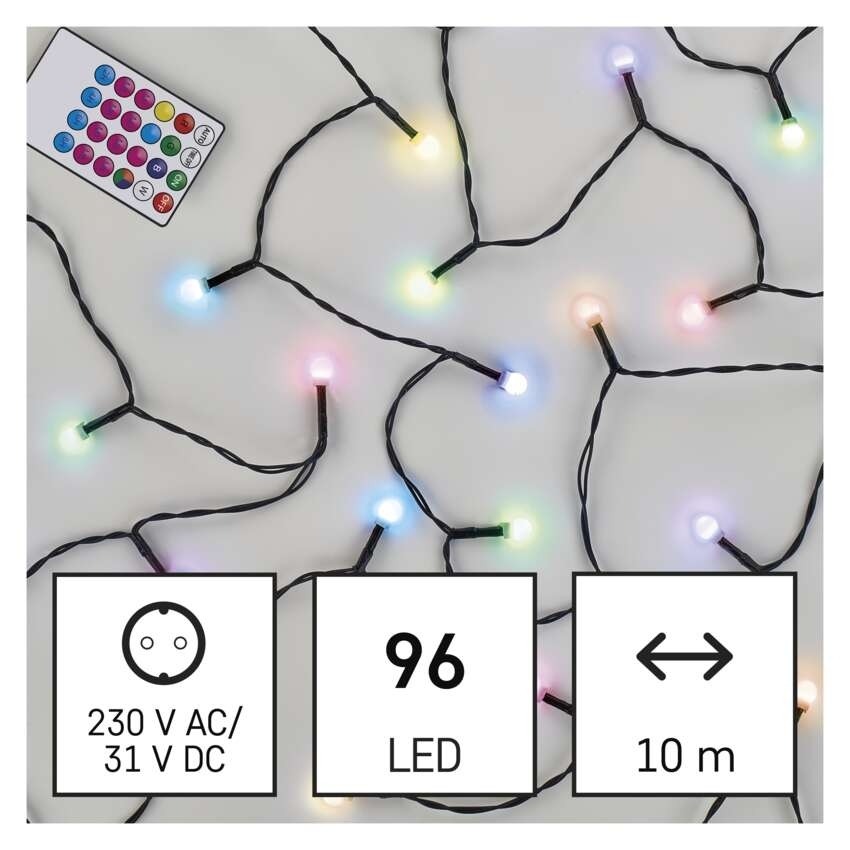 EMOS LED vánoční cherry řetěz – kuličky, 10 m, RGB, ovladač, programy, časovač