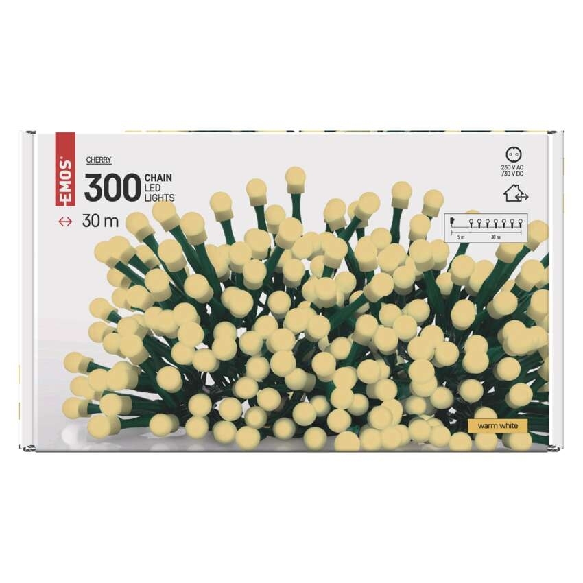 LED vánoční cherry řetěz – kuličky, 30 m, venkovní i vnitřní, teplá bílá, časovač