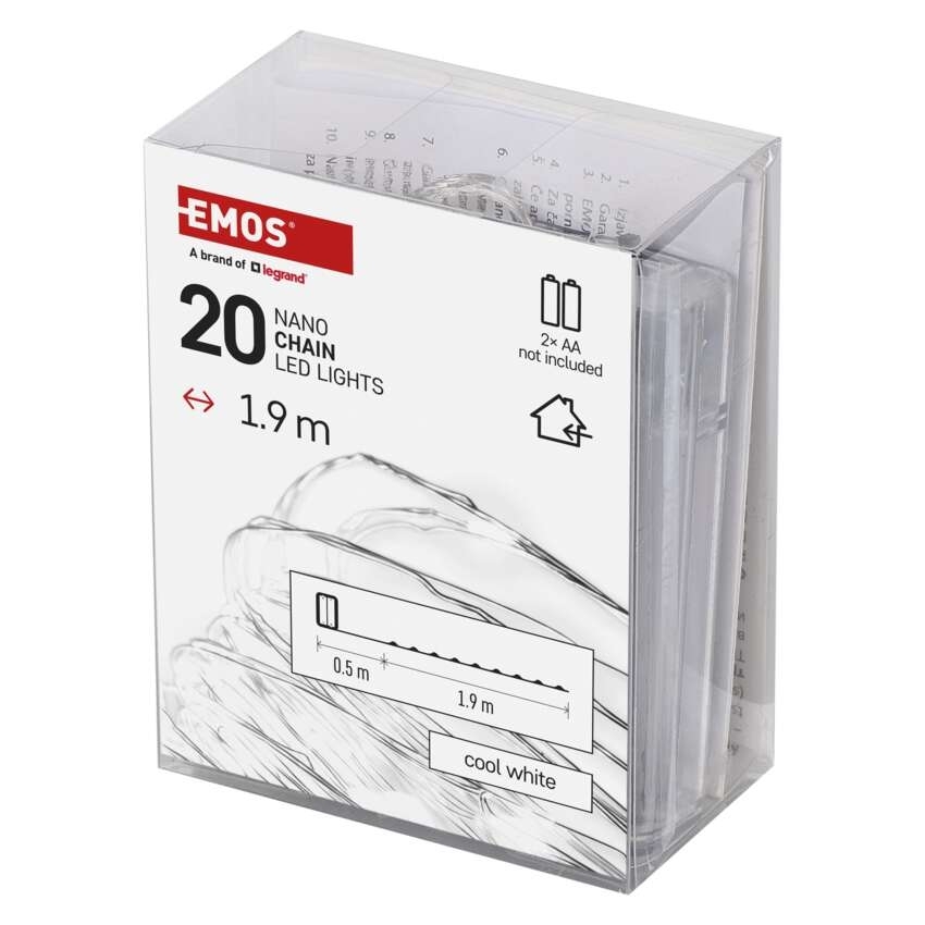 LED vánoční nano řetěz, 1,9 m, 2x AA, vnitřní, studená bílá, časovač