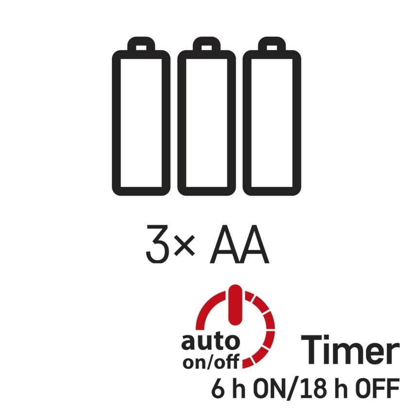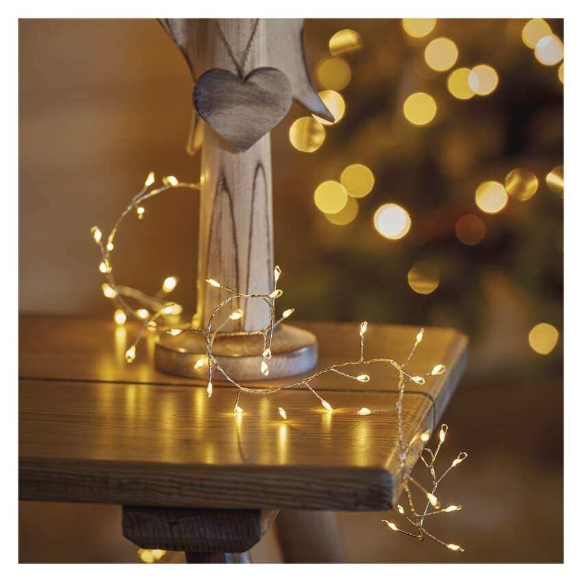 D3FW01 EMOS NANO vánoční řetěz klaster 100 LED, střbrný drát, 2,4m, 3xAA, časovač, teplá bílá
