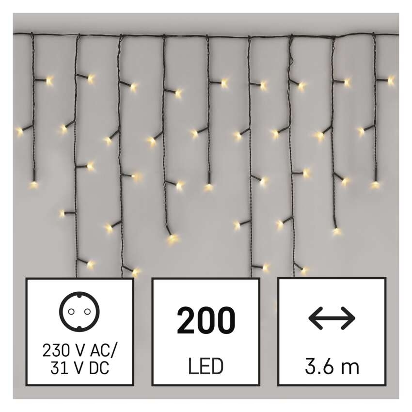 LED vánoční rampouchy, 3,6 m, venkovní i vnitřní, teplá bílá, programy