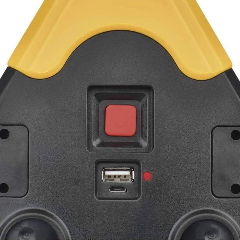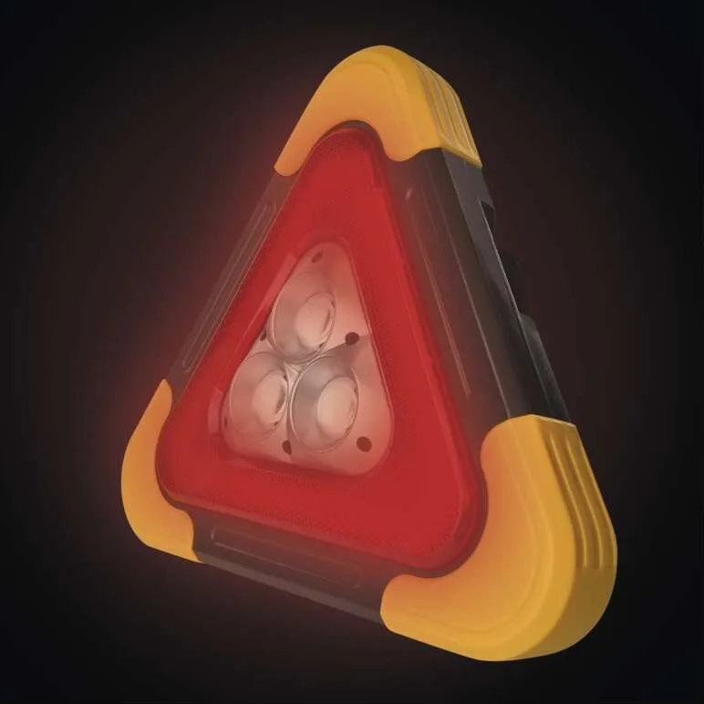 LED varovný trojúhelník je napájen vestavěným Li-Ion akumulátorem s kapacitou 1 800 mAh / 3,7 V, který je součástí balení, a dobíjí se pomocí konektoru micro USB. Svítidlo je osazeno třemi COB LED a jednou červenou LED, nabízí celkem pět režimů svícení a maximální světelný tok 350 lm s dosahem až 20 m. Tělo je vyrobeno z ABS plastu v černo-žlutém provedení, svítidlo je nárazuvzdorné, má otočnou rukojeť a je dodáváno včetně USB kabelu.
