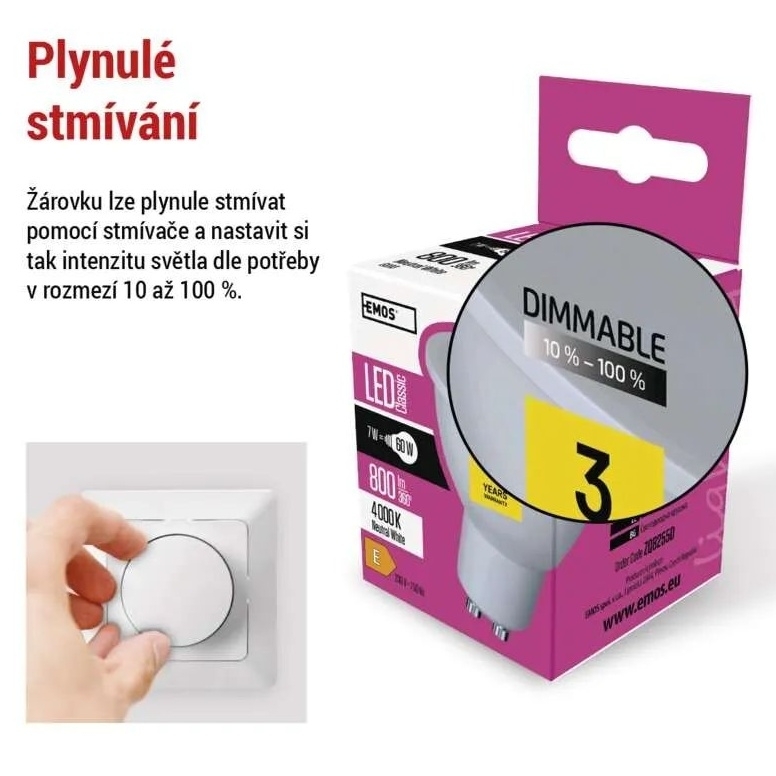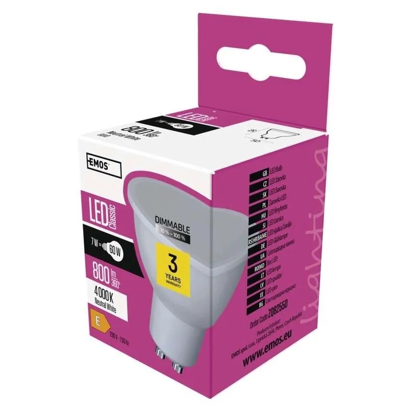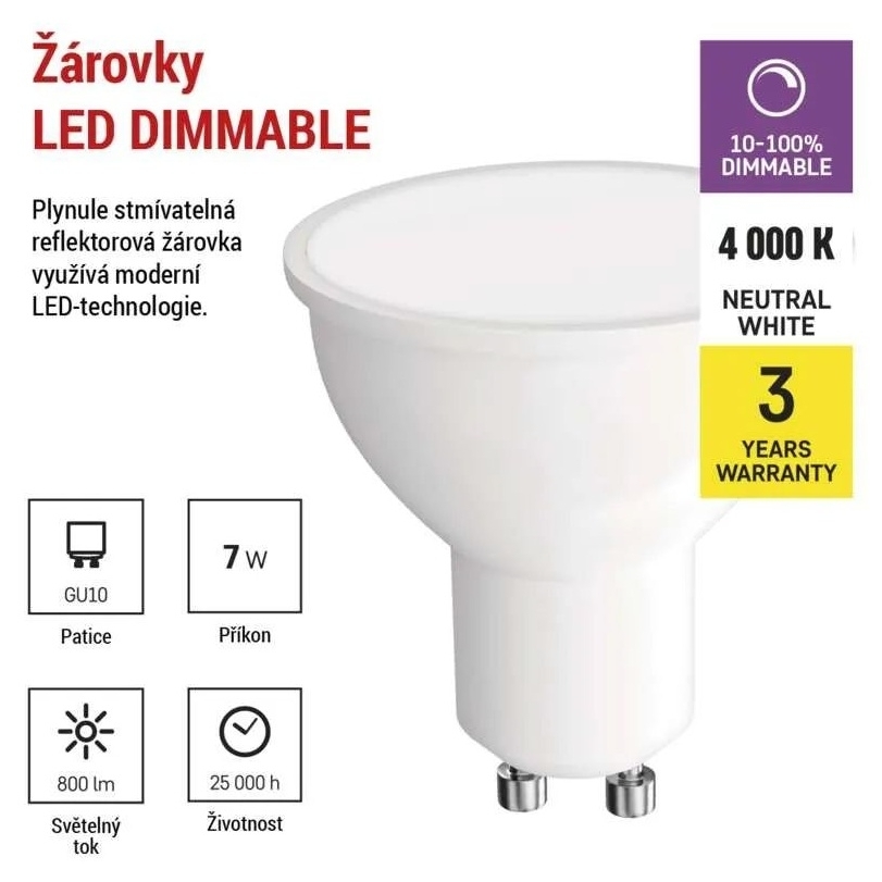 LED žárovka Classic MR16 / GU10 / 7 W (60 W) / 800 lm / neutrální bílá / stmívatelná