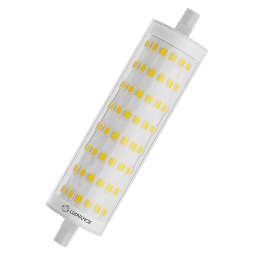 LEDVANCE LED Line 118 125 300° P 15W 827 Clear R7s je dvoupaticový LED světelný zdroj s výkonem 15 W, světelným tokem 2000 lm a teplotou chromatičnosti 2700 K.