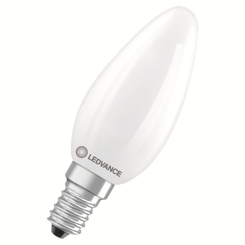 LEDVANCE LED Classic B 60 Filament DIM P 5,9W 827 Frosted E14 je stmívatelný LED světelný zdroj v klasickém tvaru svíčky s výkonem 5,9 W, světelným tokem 806 lm a teplotou chromatičnosti 2700 K.