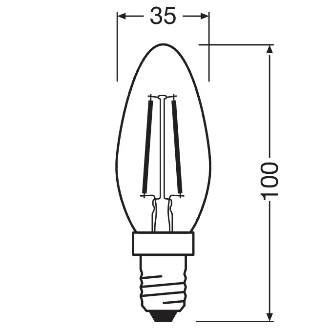 LED filamentový světelný zdroj s paticí E14 určený pro vnitřní všeobecné a dekorativní osvětlení.