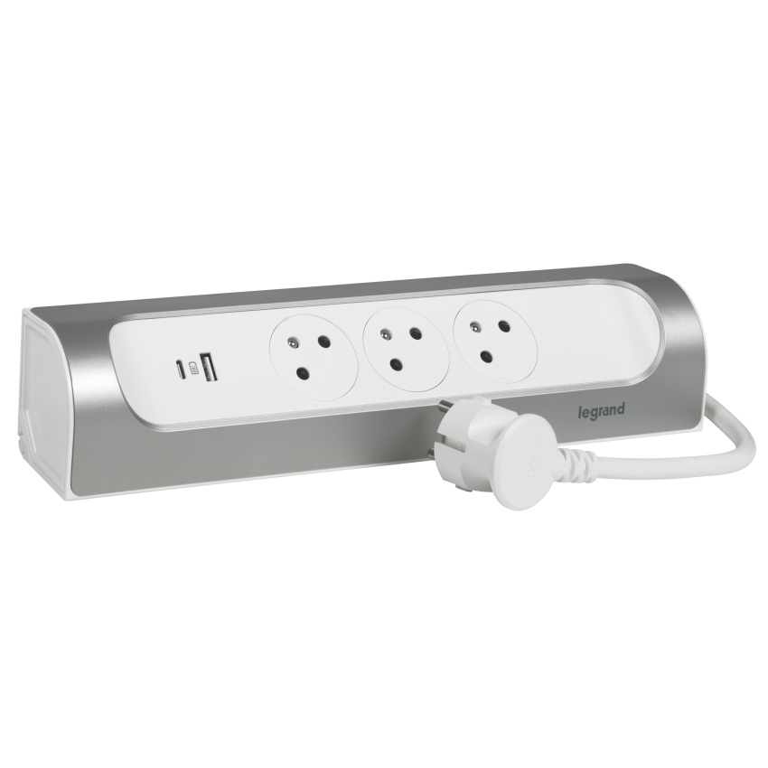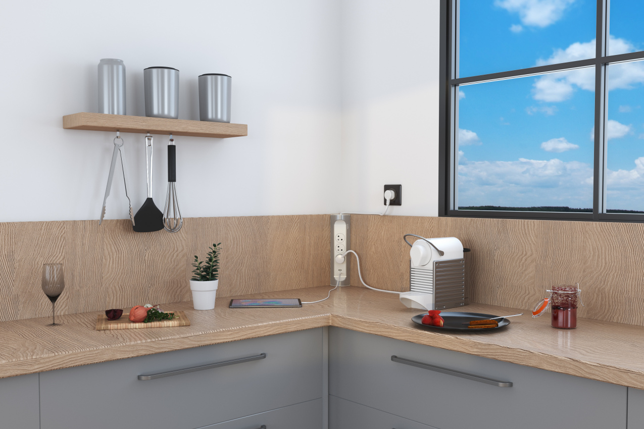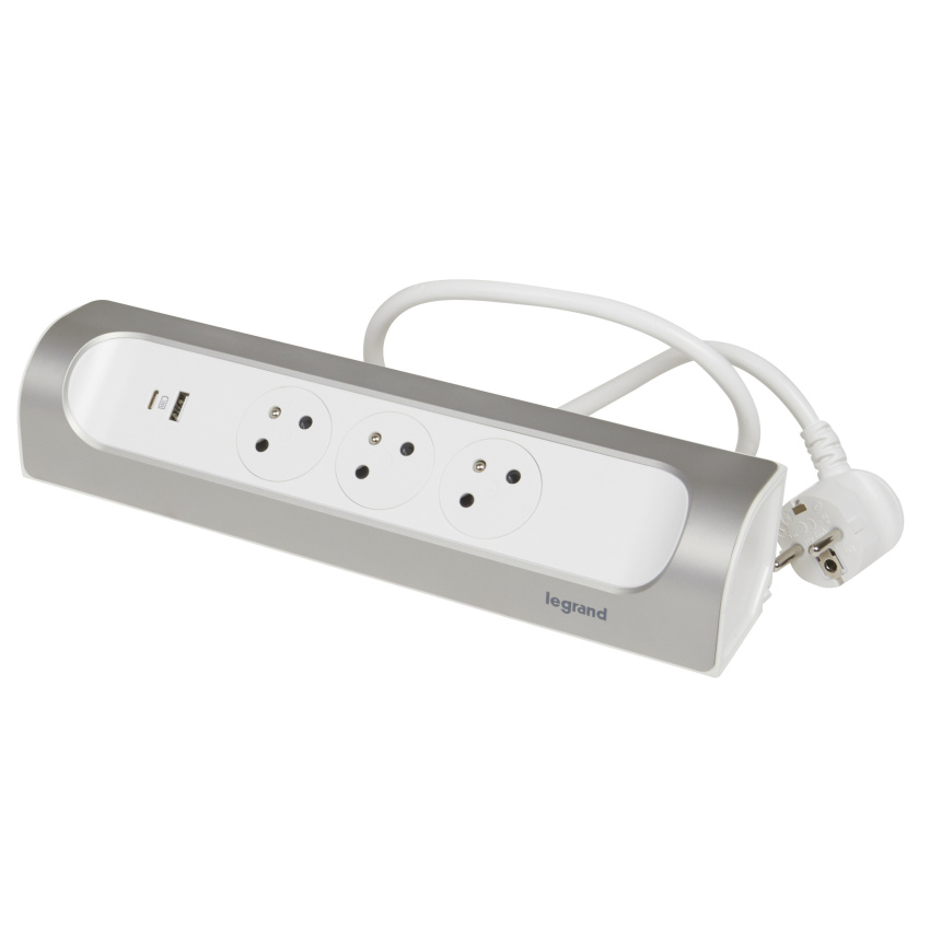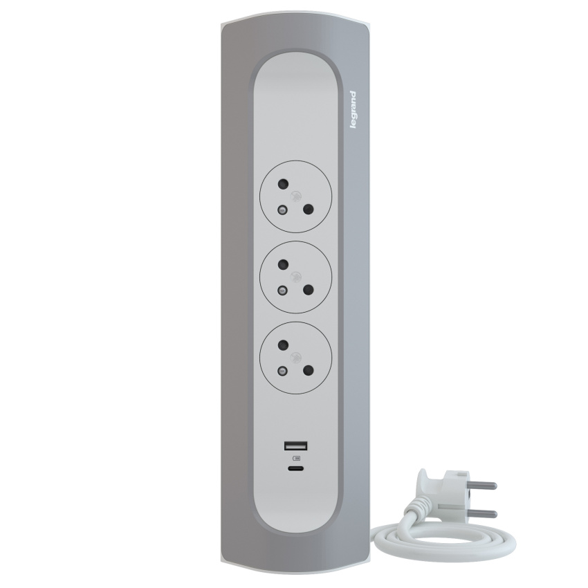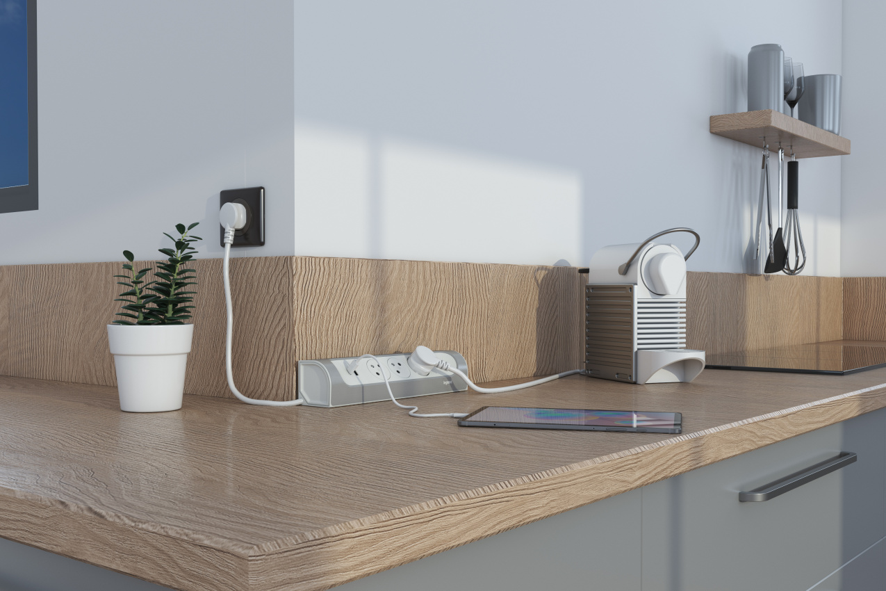 Praktický prodlužovací přívod s pootočenými zásuvkami a dvěma nabíječkami USB. Umožňuje instalaci na libovolném místě, horizontální nebo vertikální upevnění a připevnění pomocí šroubů nebo oboustranné lepící pásky.